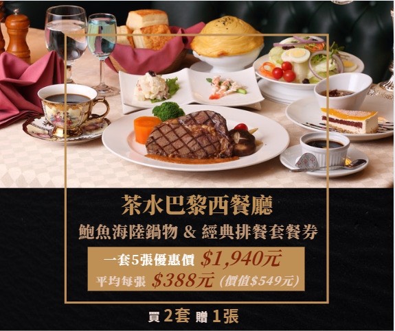 【宜蘭】茶水巴黎西餐廳 平假日海陸饗宴券 - 10 張
